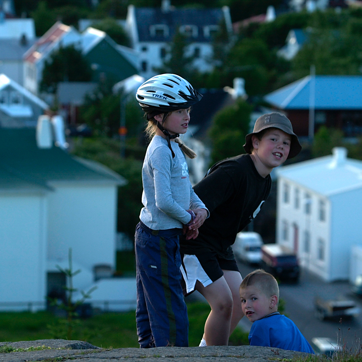 Börn úti að leika í sólinni
