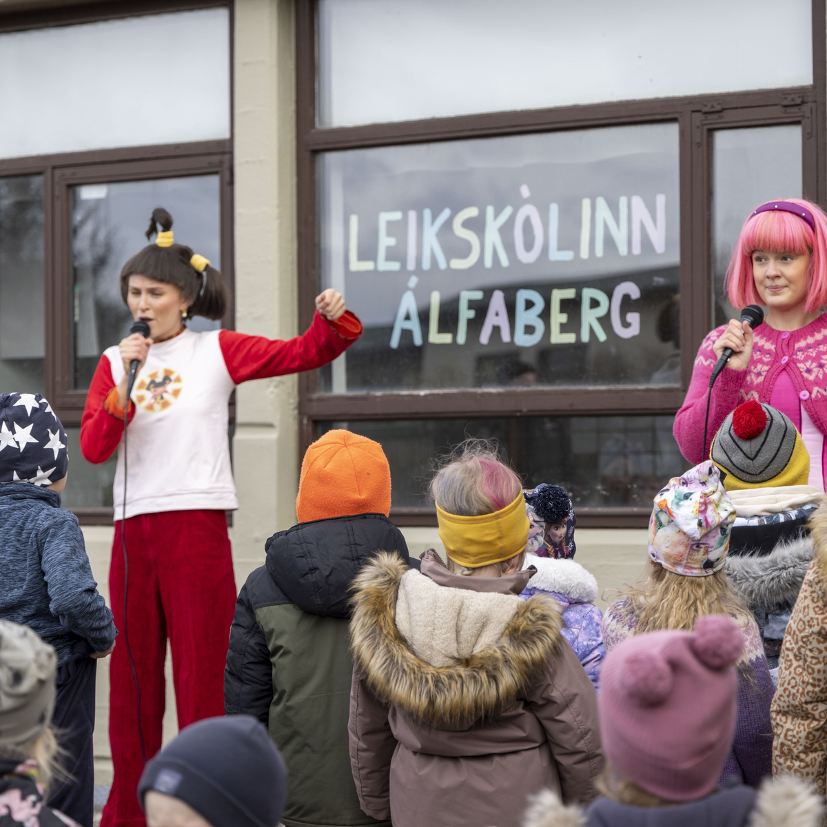Solla stirða og Halla hrekkjusvín skemmta á leikskólanum Álfabergi