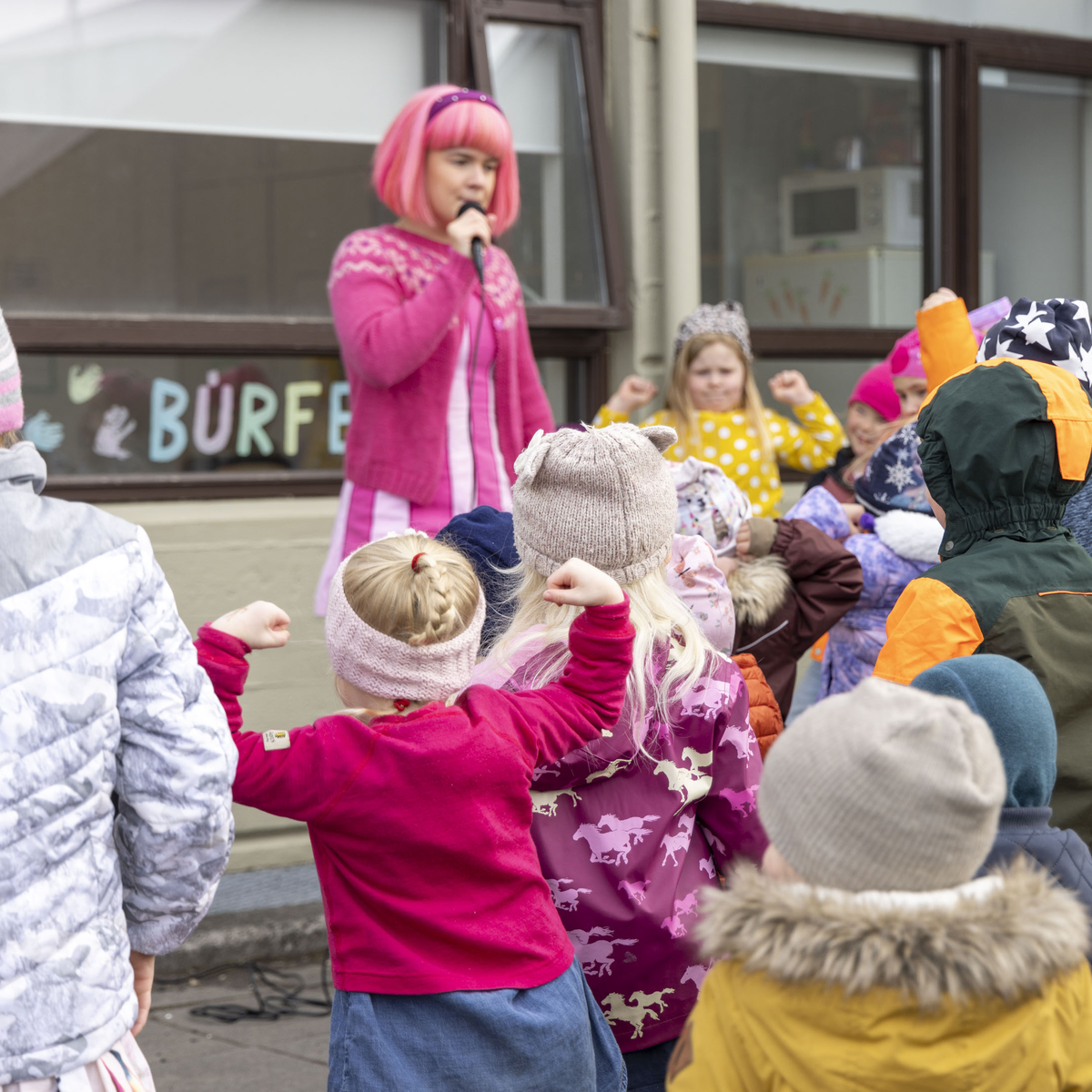Solla stirða og Halla hrekkjusvín skemmta á leikskólanum Álfabergi