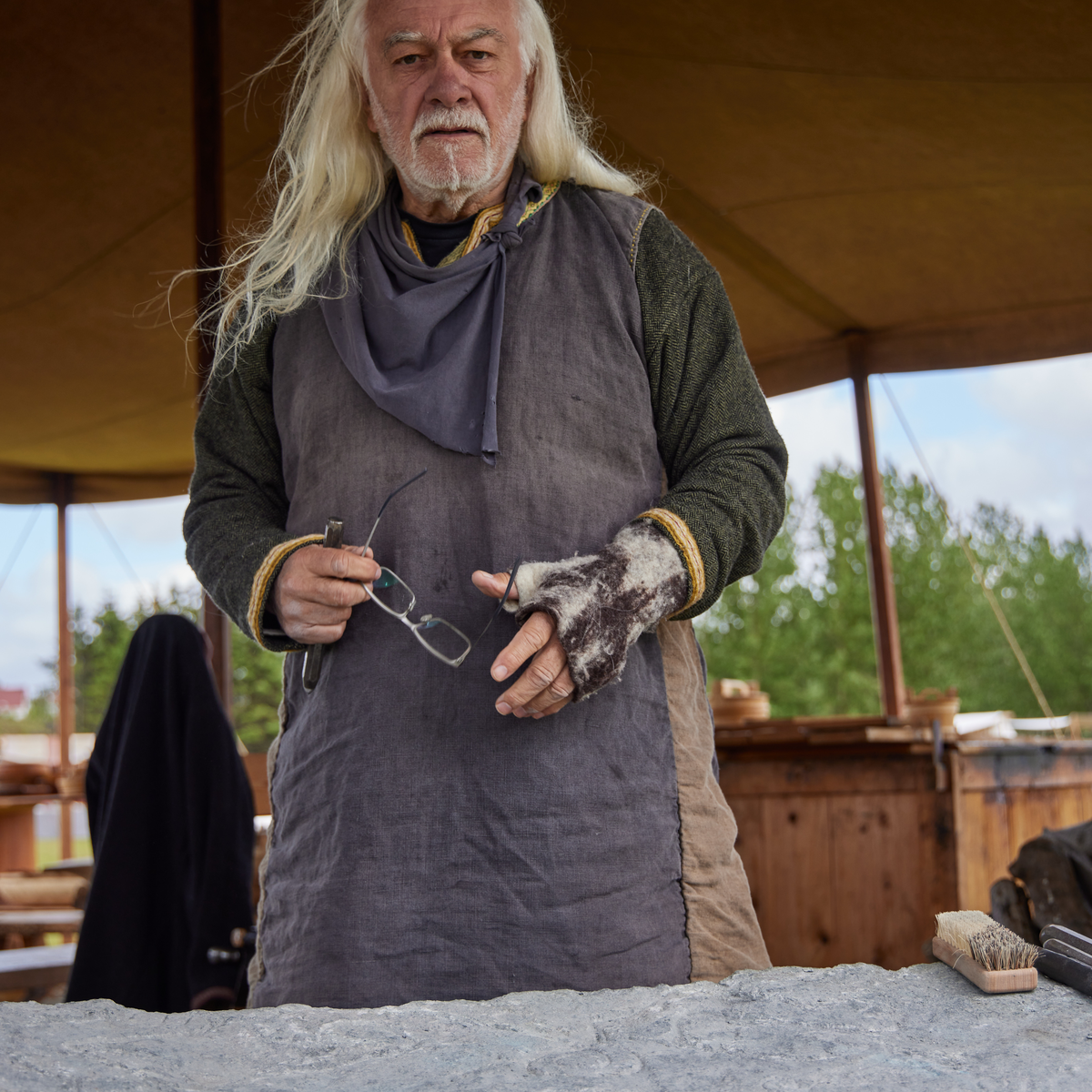 Víkingahátíð 2022, Víðistaðatúni. Úlfarssteinninn ristur.
