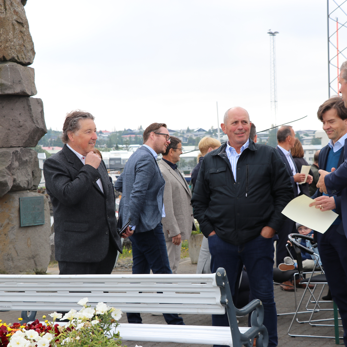 Undirritun viljayfirlýsingar vegna framtíðarhúsnæðis Tækniskólans við Suðurhöfnina í Hafnarfirði. Júlí 2021. Rósa, Bjarni Benediktsson, Ágúst Bjarni ...