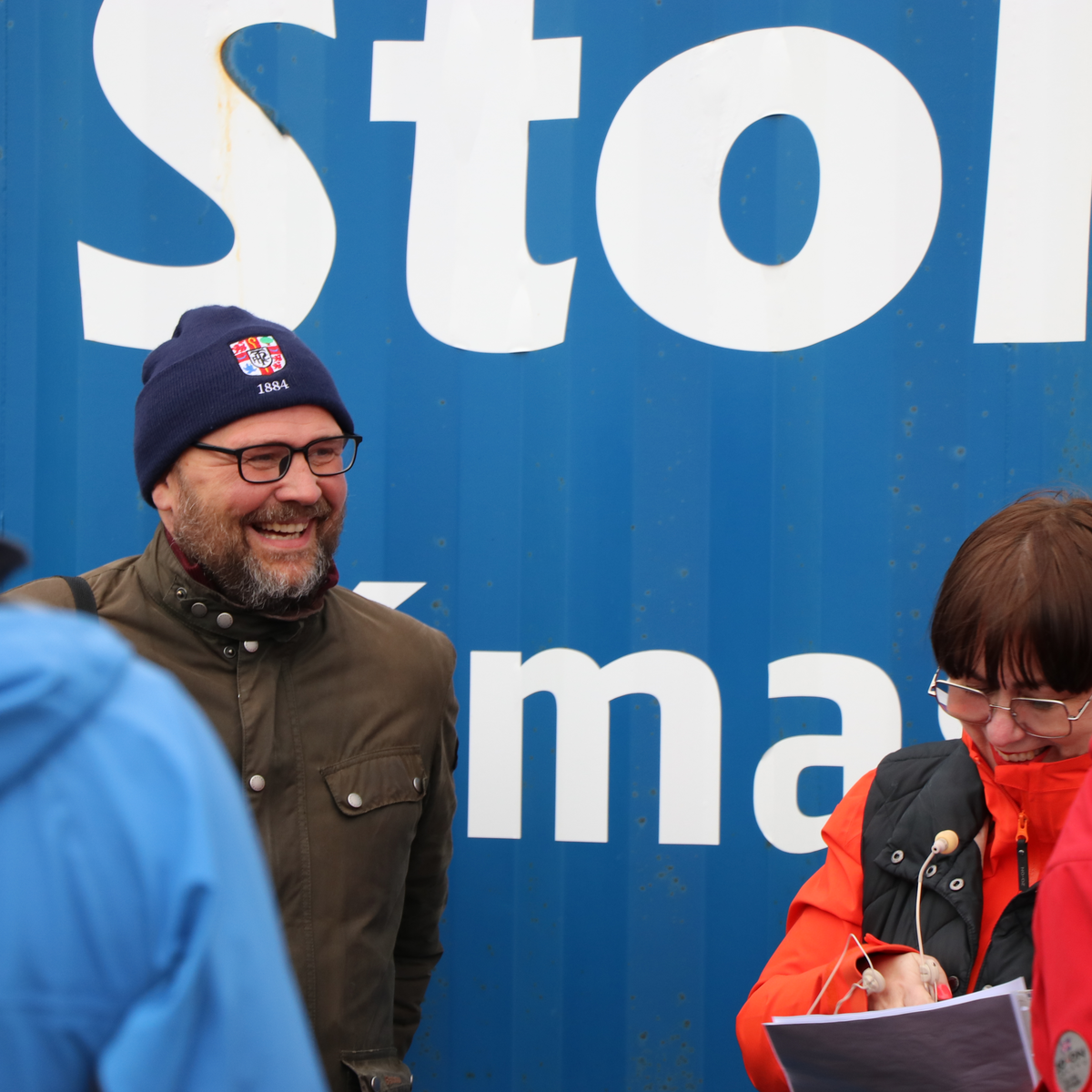 Steinunn Þorsteinsdóttir og Einar S. Einarsson frá Landsneti leiða göngu um slóðir Hamraneslínu sem hefur haldið ljósunum logandi síðan 1969. Rafmögnuð framtíð — línuslóðir, lífsgæðin og ljósið