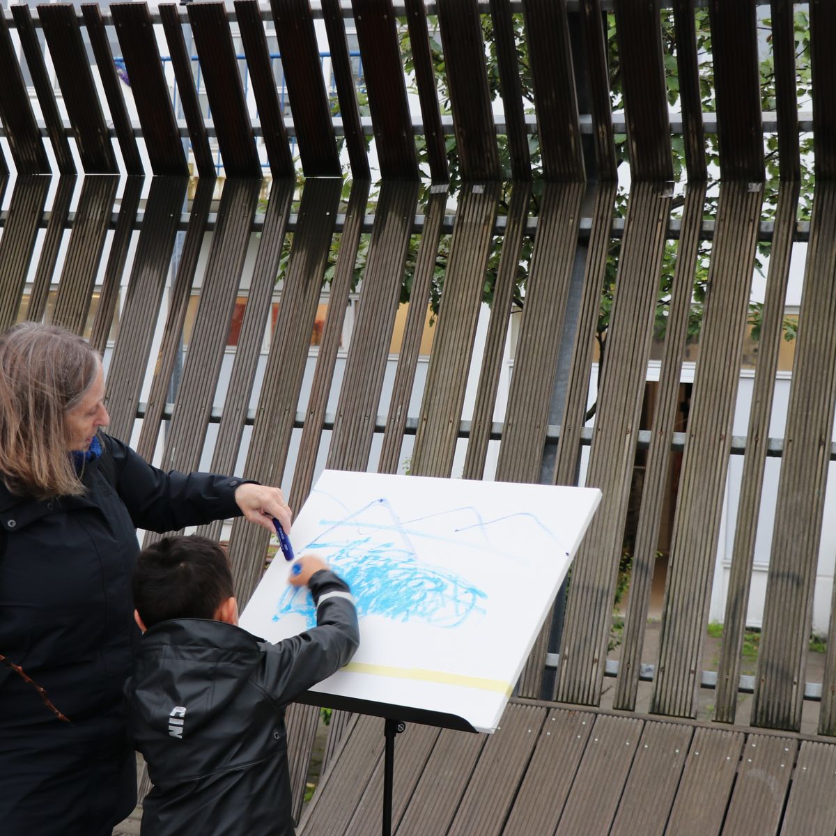 Tómas Leó Halldórsson, grafískur hönnuður og myndlistarmaður, leiðir göngu frá Bókasafni Hafnarfjarðar að Víðistaðatúni. Á leiðinni verða stórir fletir sem þátttakendur staldra við og teikna á með því að bregðast við því sem þau sjá, hafa séð á leiðinni og því sem nú þegar er komið á teikniflötinn. Sköpun og leikur eru hér í fyrirrúmi og eftir standa listaverk sem allir áttu þátt í að skapa.