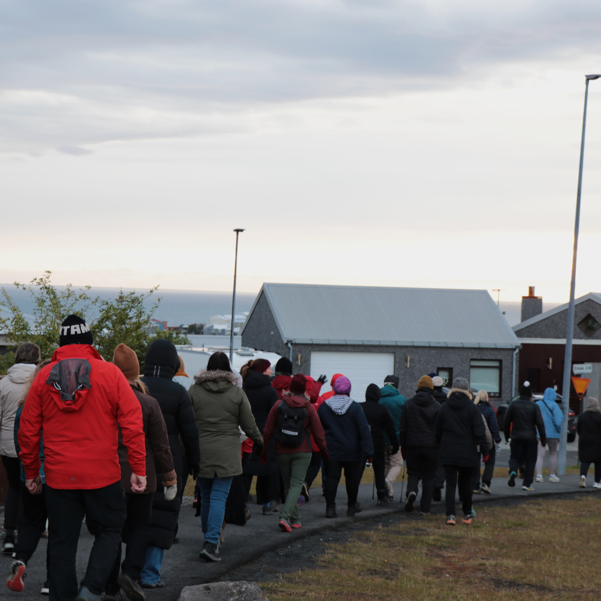 Bryndís Jóna Jónsdóttir núvitundarkennari leiðir göngu um Ástjörn og gefur þátttakendum tækifæri á að upplifa umhverfið á nýjan hátt.