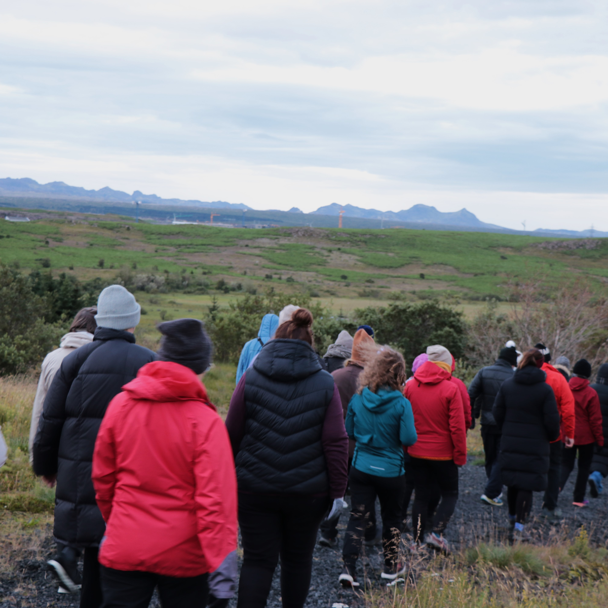 Bryndís Jóna Jónsdóttir núvitundarkennari leiðir göngu um Ástjörn og gefur þátttakendum tækifæri á að upplifa umhverfið á nýjan hátt.