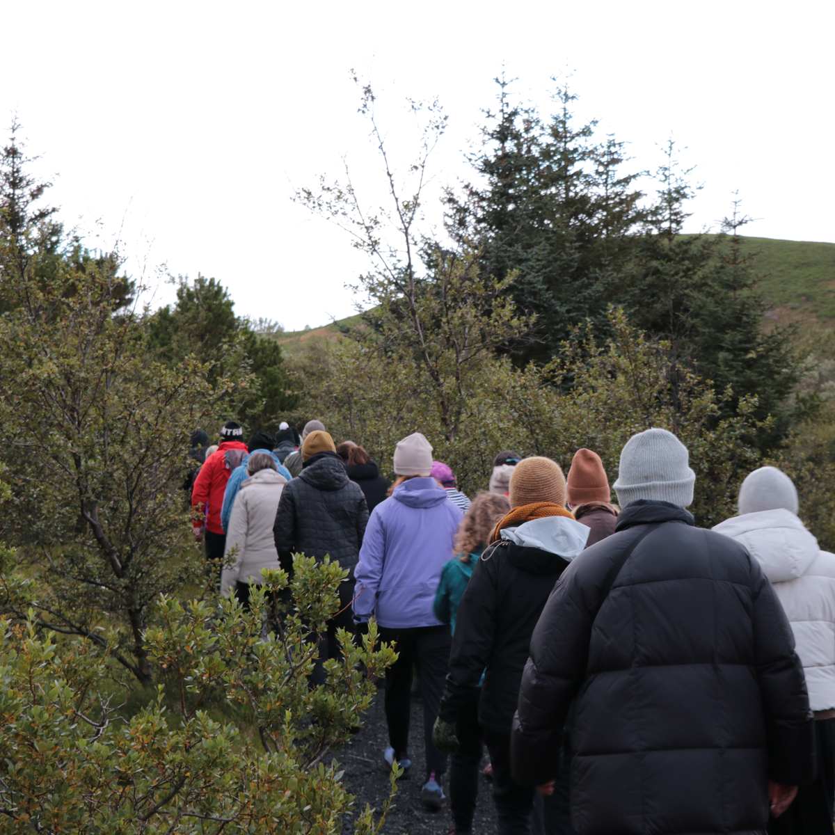 Bryndís Jóna Jónsdóttir núvitundarkennari leiðir göngu um Ástjörn og gefur þátttakendum tækifæri á að upplifa umhverfið á nýjan hátt.