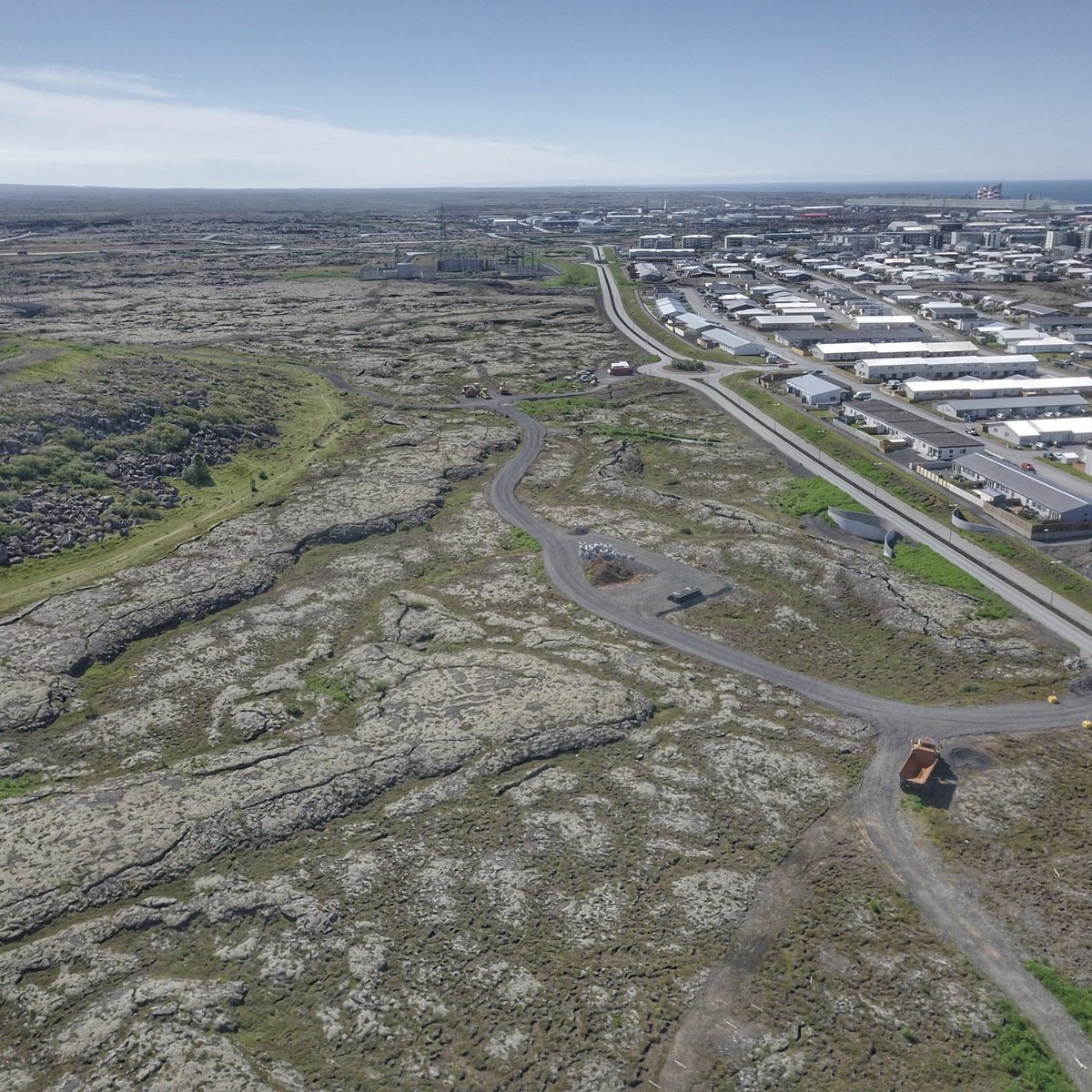 Drónamyndir frá Guðmundi Fylkissyni. Skarðshlíð og Vellir. Myndir frá uppbyggingu svæðis í ágúst árið 2020