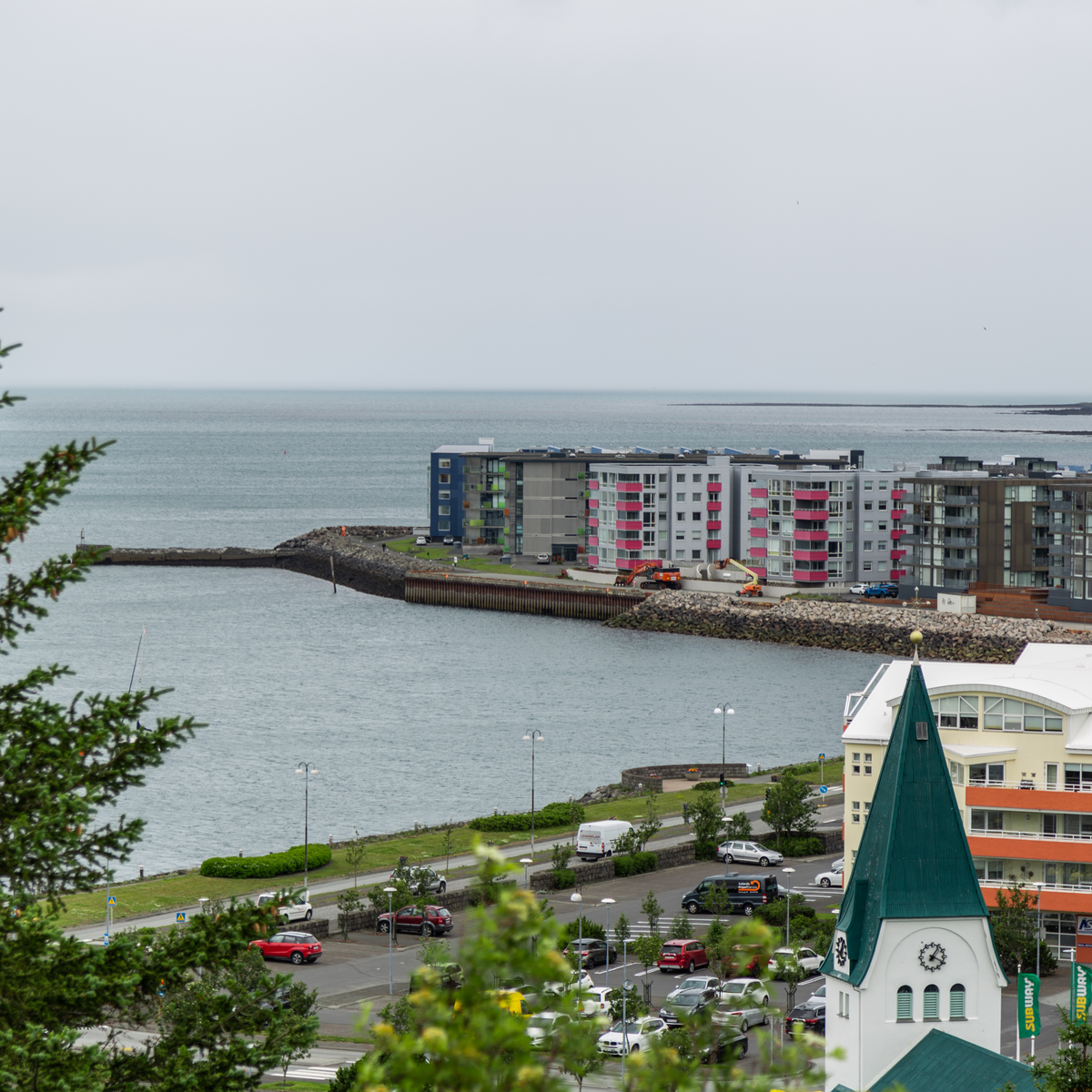 Útsýni frá Hamrinum yfir bæinn sumarið 2021