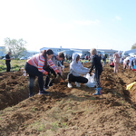 Hafnfirskar fjölskyldur og flóttafjölskyldur hittust í skólagörðunum við Öldutún síðdegis í gær í glaðasólskini. Þetta var opnunaviðburður fyrir uppskeruverkefni á vegum Hafnarfjarðarbæjar og GETA-hjálparsamtaka til að efla tengsl.